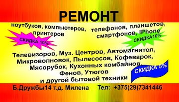 Сервисный центр осуществляет профессиональный ремонт мобильных телефонов, планшетов, ноутбуков, компьютеров и ремонт мелкой бытовой техники.